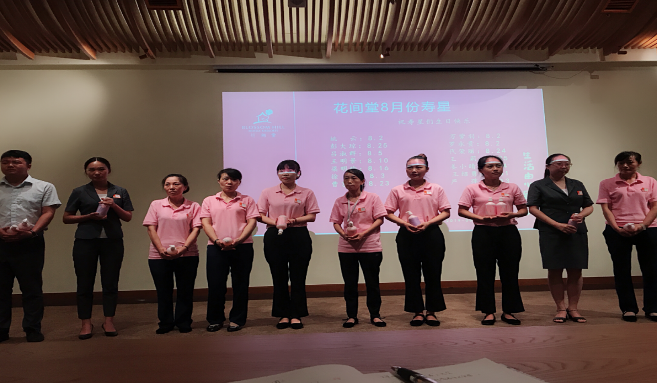 8月27日下午,雅安蜀天旅游公司花間堂酒店召開全體員工大會(huì),酒店管理方派駐總經(jīng)理?xiàng)钪懈鞒直敬螘?huì)議。會(huì)議上總經(jīng)理?xiàng)钪懈硎?,?jiān)決擁護(hù)蜀天旅游公司的各項(xiàng)任命以及會(huì)議精神,堅(jiān)決執(zhí)行。并向8月生日員工發(fā)放生日禮品,向壽星們表示祝賀,希望在未來的工作中,大家能更加熱愛自己的崗位,熱愛酒店,為公司的成長(zhǎng)貢獻(xiàn)自己的一份力量。通過對(duì)酒店2019年8月工作的回顧總結(jié),激勵(lì)鞭策全體員工要增強(qiáng)自信,振奮精神,發(fā)揚(yáng)成績(jī),整改問題,并根據(jù)蜀天旅游公司下達(dá)的管理目標(biāo)、經(jīng)營(yíng)指標(biāo),制定具體措施。2019年下半年酒店將面臨新的挑戰(zhàn)...