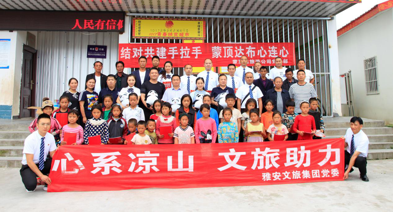 2019年7月6日,雅安文旅集團(tuán)黨委副書記、工會(huì)主席殷麗華帶隊(duì),雅安文旅集團(tuán)副總經(jīng)理、蒙頂山旅游公司黨支部書記張京和支部全體黨員,赴國(guó)家深度貧困縣涼山州越西縣申果鄉(xiāng)達(dá)布村開展扶貧慰問活動(dòng)。 一是慰問貧困學(xué)生。涼山州越西縣是國(guó)家深度貧困縣,申果鄉(xiāng)達(dá)布村位于大涼山深處,海拔2800米,該村有村民197戶,其中建檔立卡貧困戶76戶。  文旅集團(tuán)、蒙頂山旅游公司通過一周的籌備,組織廣大職工捐款、捐物,累計(jì)捐贈(zèng)青少年讀物245本,并購(gòu)買10000余元文具、體育器材、生活用品等物資。歷時(shí)7小時(shí),送抵越西縣申果鄉(xiāng)達(dá)...