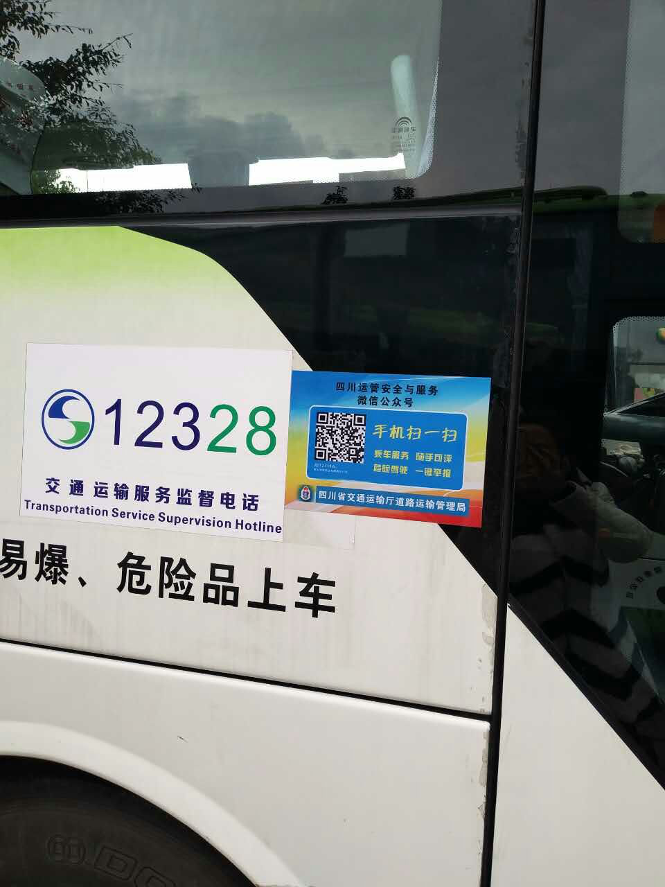 近期,省運(yùn)管局和市運(yùn)管處下發(fā)了《關(guān)于開展道路運(yùn)輸“安全與服務(wù)”微信公眾平臺(tái)運(yùn)用工作的通知》,我司全資子公司雅安文旅運(yùn)業(yè)有限責(zé)任公司根據(jù)《通知》要求,認(rèn)真貫徹執(zhí)行,完成每輛車的“安全與服務(wù)”微信公眾平臺(tái)二維碼張貼工作,引導(dǎo)廣大乘客對(duì)車輛運(yùn)輸安全生產(chǎn)進(jìn)行全過程監(jiān)管。
