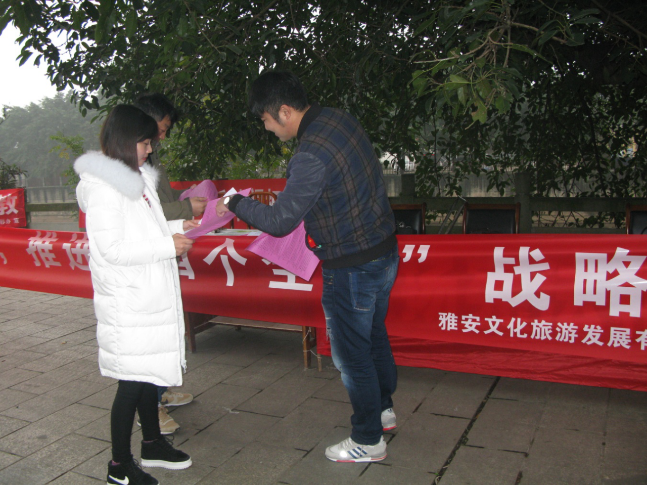 通過開展宣傳活動(dòng),使公司全體員工深入宣傳了解“十三五”時(shí)期的發(fā)展理念、主要目標(biāo)和重大舉措 ,引導(dǎo)廣大干部職工把思想統(tǒng)一到六中全會(huì)精神上來,用法治的理念來推動(dòng)公司的發(fā)展,提升雅安旅游品牌形象。