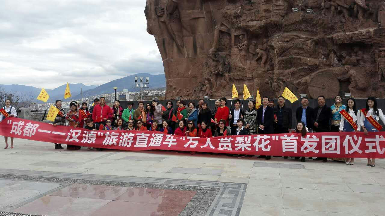 3月10日在成都新南門旅游集散中心和漢源揚帆起航廣場舉行了“成都—漢源”直通車“萬人賞梨花”首發(fā)團儀式。漢源縣副縣長龔榮高、縣旅游局局長李毅、成都旅游集散中心旅游營運部主任許蜀錦、成都天府旅行社和雅安文旅公司相關(guān)負責人出席了首發(fā)團儀式。