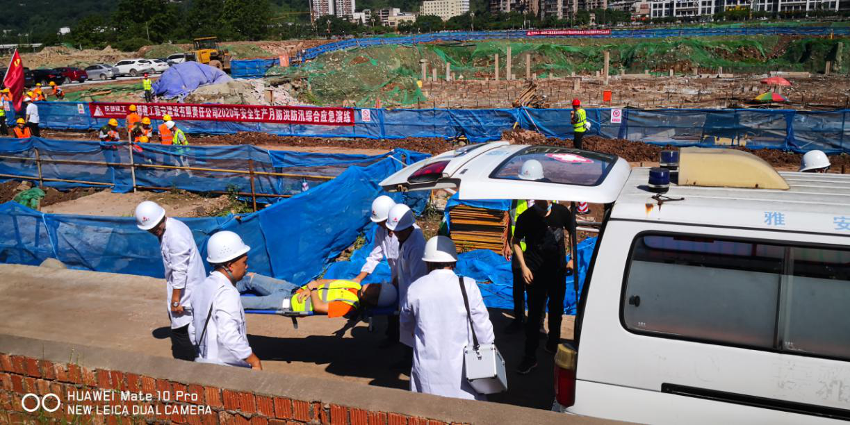 本次演練分為疏散保衛(wèi)組、醫(yī)療救治組、物資保障組、應(yīng)急救援組和信息發(fā)布組五個(gè)防洪防汛應(yīng)急演練組。現(xiàn)場模擬演練周公堰河水因連續(xù)暴雨導(dǎo)致河水上漲,漫過堰堤,雅安熊貓會展博覽館基坑作業(yè)面大量進(jìn)水,項(xiàng)目安全負(fù)責(zé)人確認(rèn)險(xiǎn)情后,立即啟動防汛應(yīng)急預(yù)案。