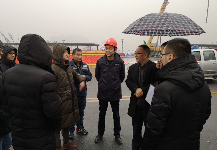 任明輝和電力工程師對(duì)會(huì)場(chǎng)內(nèi)燈組擺放點(diǎn)位和電力接入情況進(jìn)行了現(xiàn)場(chǎng)查看,就電力接入難點(diǎn)向燈組制作安裝單位進(jìn)行了詳細(xì)的講解指導(dǎo)。