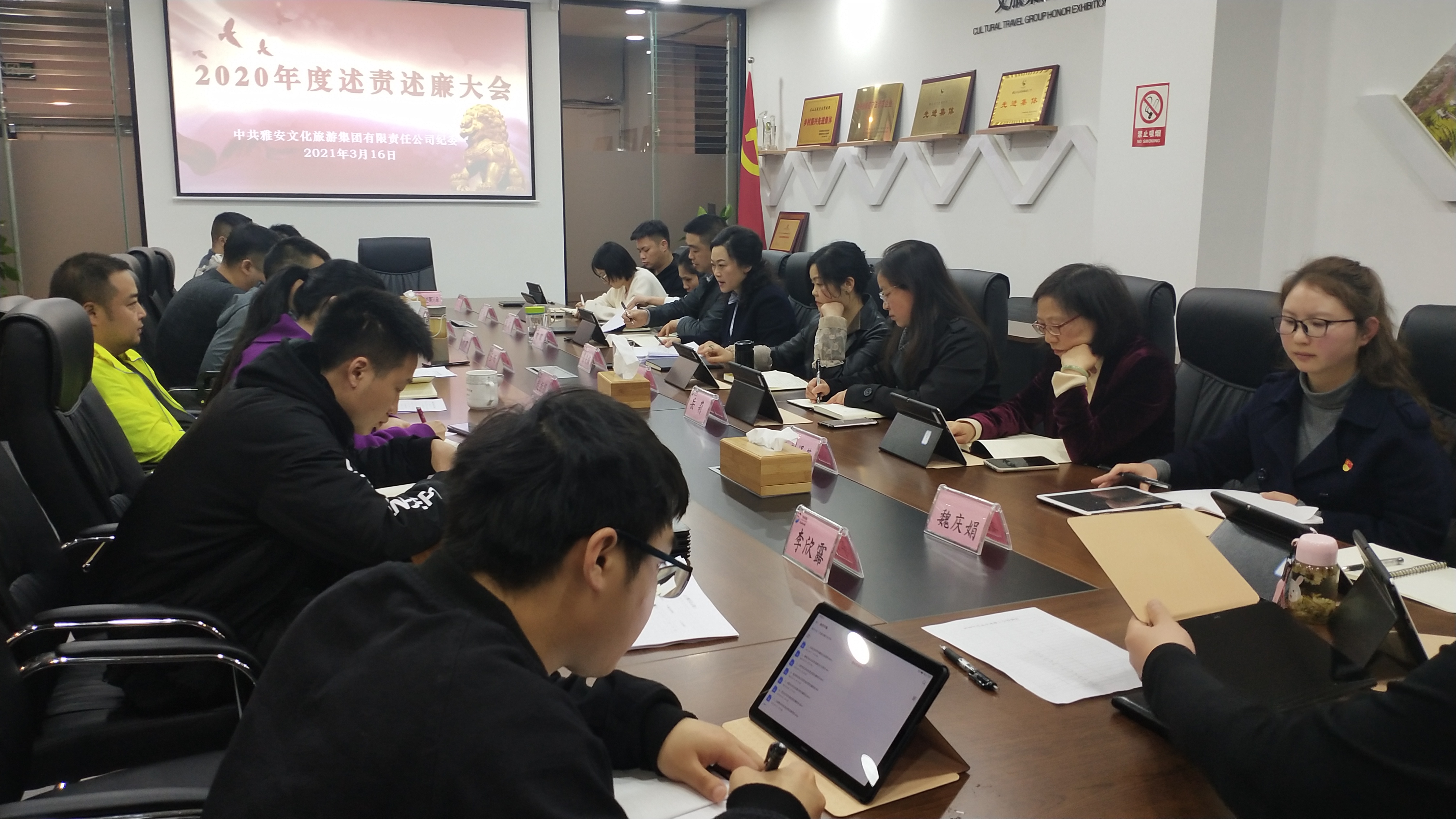 2021年3月16日晚19:00,雅安文旅集團(tuán)紀(jì)委在集團(tuán)會(huì)議室舉行2020年度述責(zé)述廉大會(huì),大會(huì)述責(zé)述廉對(duì)象、集團(tuán)監(jiān)督部門負(fù)責(zé)人、職工代表、黨員代表等22人參會(huì)。