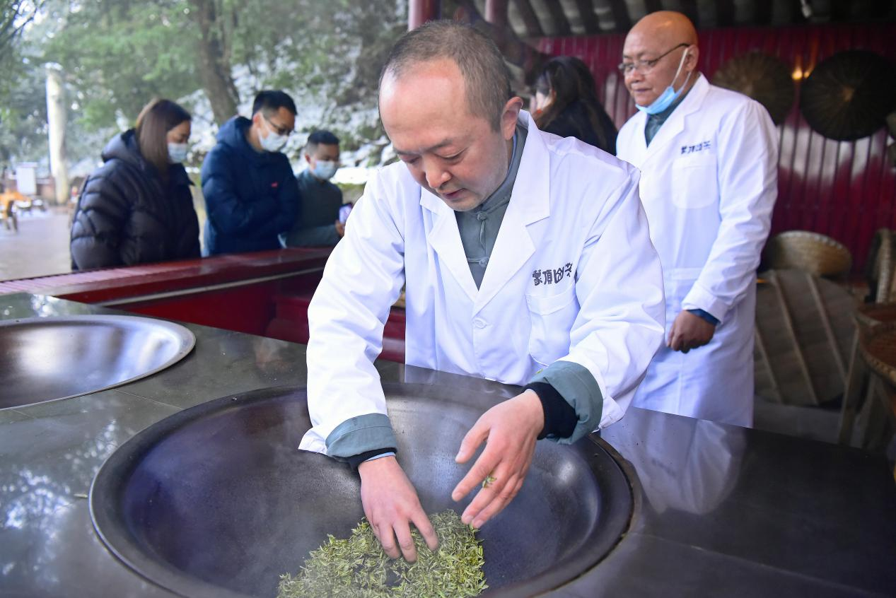 活動現(xiàn)場,中國制茶大師、蒙山茶非遺傳承人張強(qiáng)現(xiàn)場炒制2022第一鍋蒙頂甘露,并現(xiàn)場奠拜茶祖,眾嘉賓滿懷虔誠之心共同祈禱茶祖庇佑,春回茶山,嫩芽滿園,開采豐年。蒙頂山春茶開園儀式的舉辦,通過推廣宣傳,將使名山蒙頂山的茶歷史、茶資源、茶優(yōu)勢、茶文化深入人心。