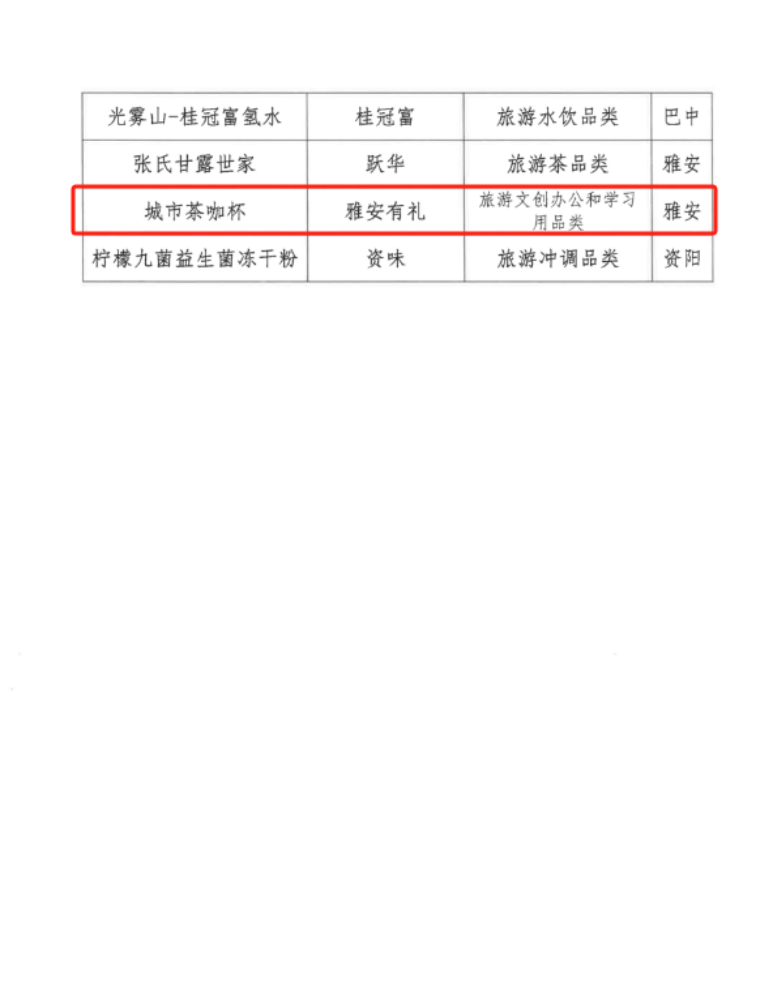 近日,由四川省文化和旅游廳指導(dǎo),四川文化創(chuàng)意產(chǎn)業(yè)研究院、四川省文化和旅游創(chuàng)意產(chǎn)業(yè)聯(lián)盟主辦,四川省旅游商品與裝備協(xié)會承辦的2024四川特色旅游商品大賽公布獲獎名單。雅安文旅集團旗下“雅安有禮”系列產(chǎn)品選送的“城市茶咖杯”在600余件決賽入圍作品角逐中獲得金獎,成為雅安地區(qū)兩個獲得金獎的商品之一。