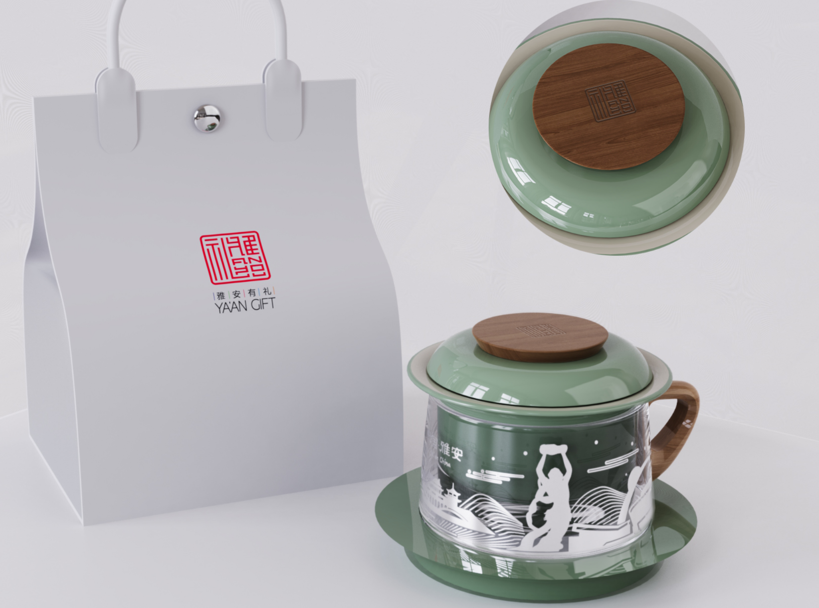 “城市茶咖杯”以女媧雕像、雅安廊橋等雅安標(biāo)志性建筑物形象為設(shè)計原型,采用飽滿的橡木、冷艷的陶瓷為主料,將茶與咖啡共通的“杯”“碟”文化進行交融,展現(xiàn)創(chuàng)意生活用品的實用化、美學(xué)化和特色化。
