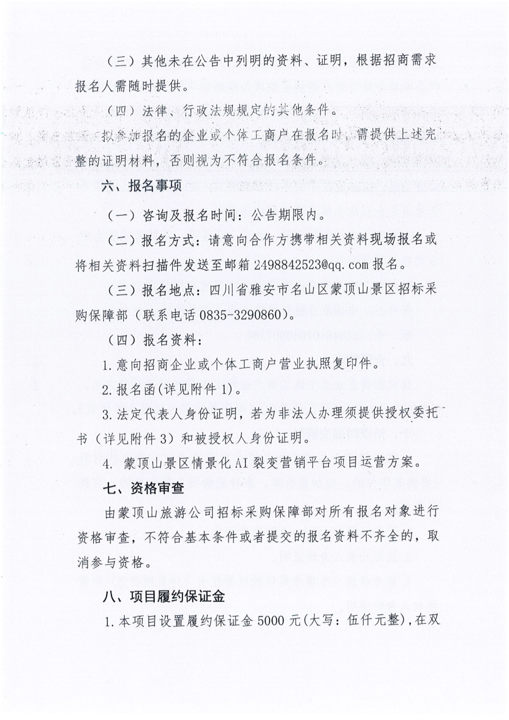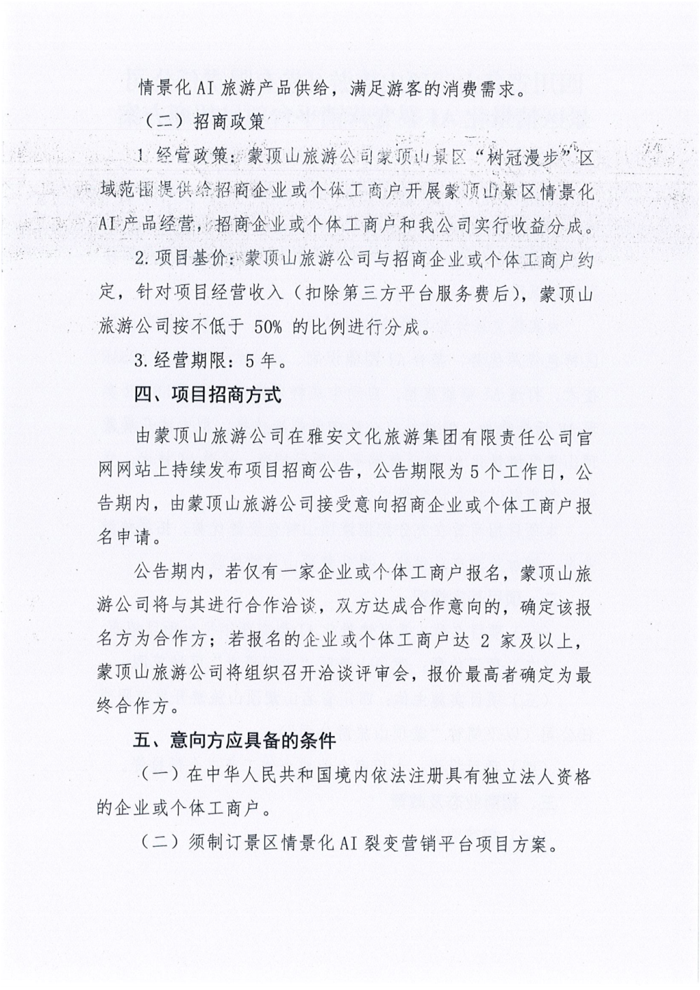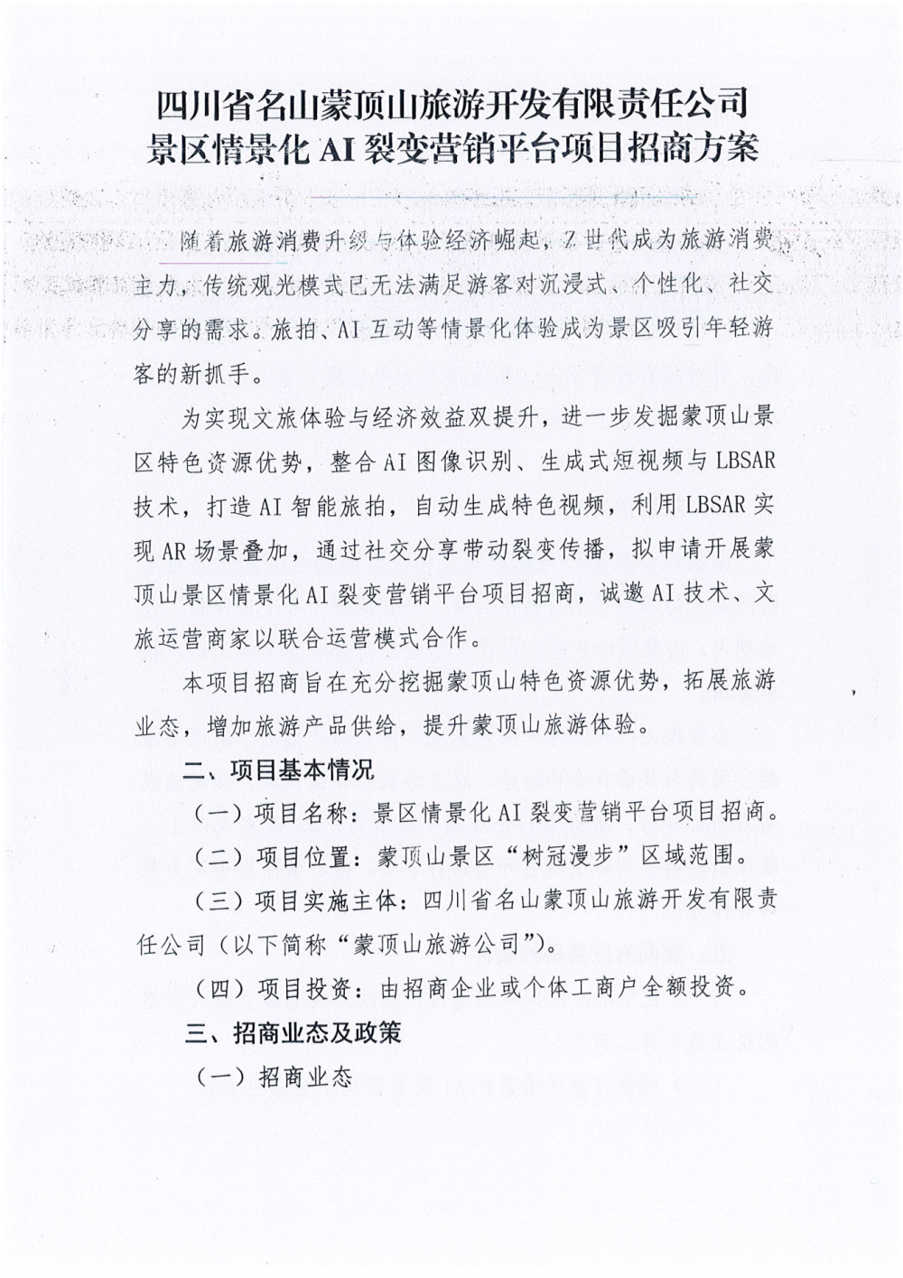 四川省名山蒙頂山旅游開發(fā)有限責(zé)任公司 景區(qū)情景化AI裂變營銷平臺項(xiàng)目招商